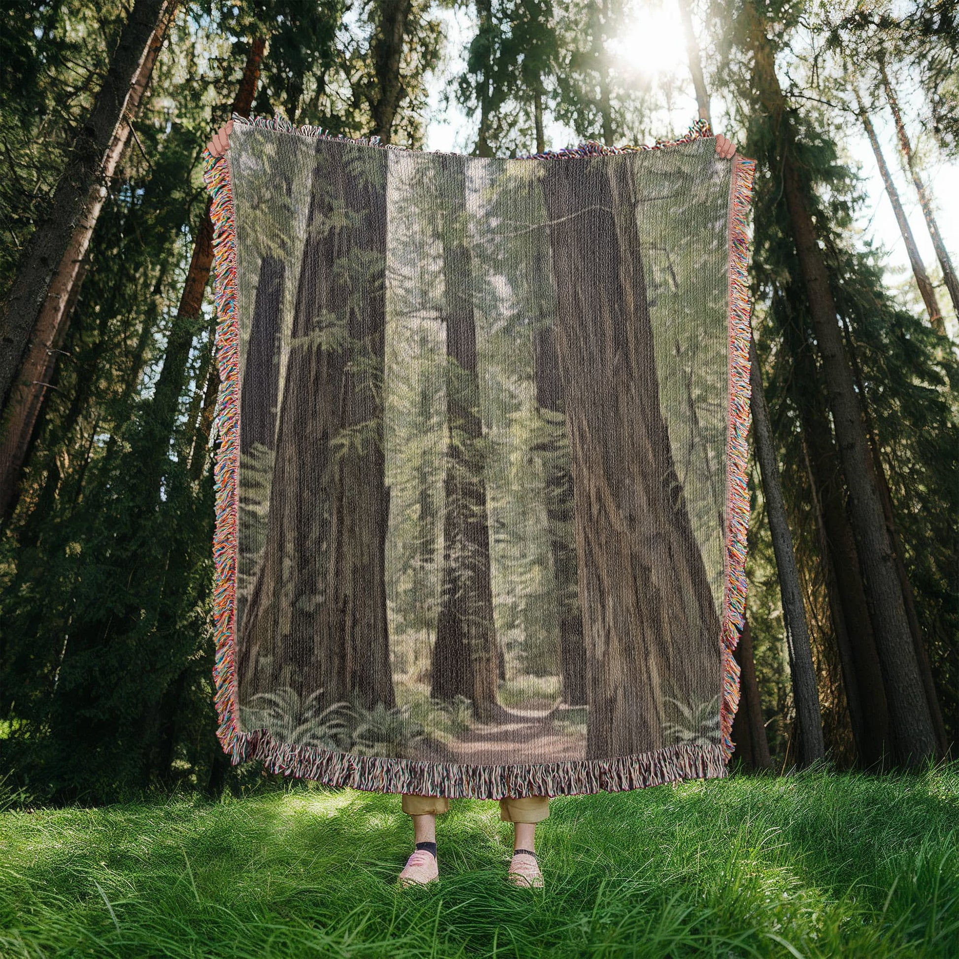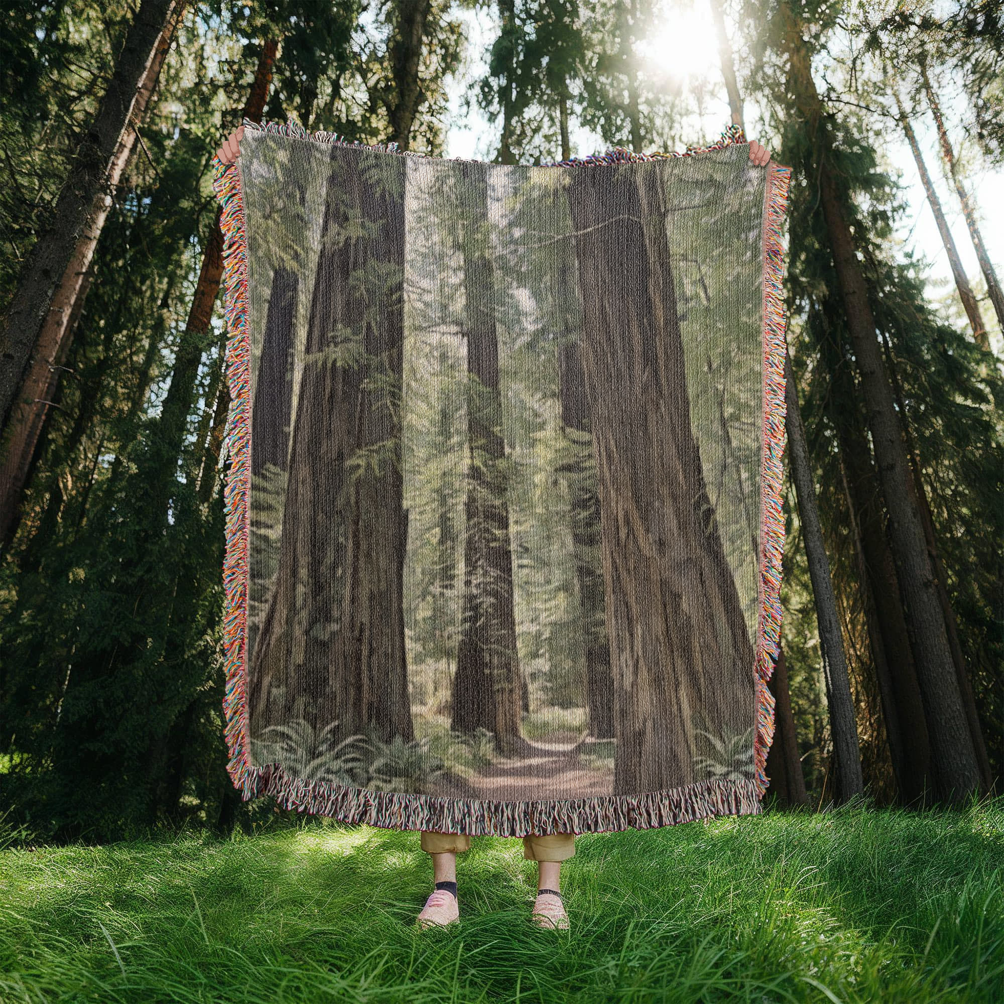 This Redwoods Walk Watercolor Woven Throw is a soft blanket that is both comfortable and versatile. This Redwoods Forest Blanket with it's colorful fringed edges is the perfect addition to your decor.