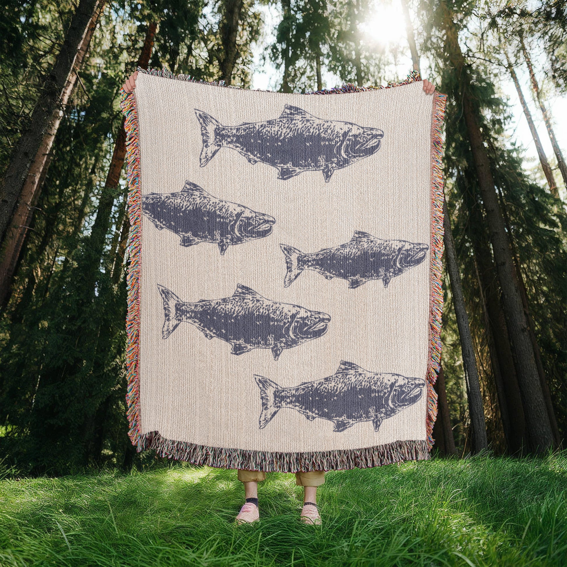Salmon Blanket, Salmon Woven Throw, Salmon Wall Tapestry, Salmon Run Fish Blanket